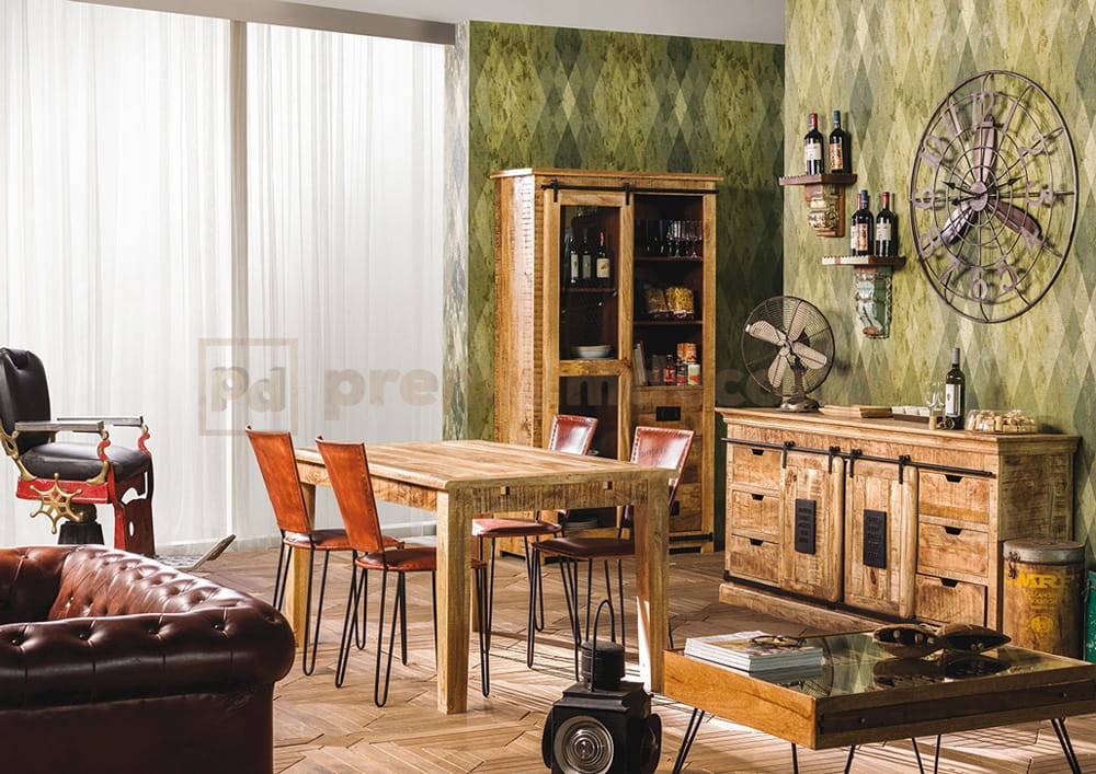 Stare drewno poddane działaniu czasu, wiatru i morza, elementy z żelaza, żeliwne tablice - takie elementy opowiadają historie z Newport. Linia pokazuje ewolucję mebli i wyposażenia wnętrz w stylu industrialnym w stronę nowoczesności i funkcjonalności. Przesuwane drzwi i drzwiczki szafek pozwalają na lepszą organizację przestrzeni.