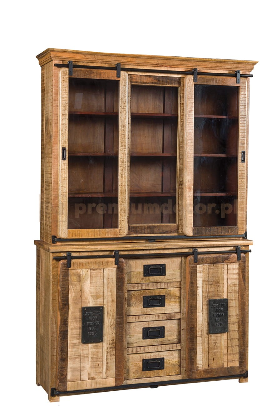 efektowny kredens z przeszkleniami, 4 szufladami i przesuwanymi drzwiami